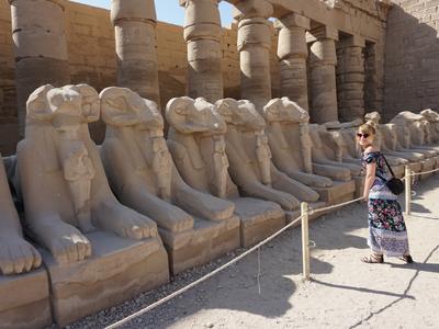 aleję sfinksów z ludzkimi głowami oraz rzeźby – kolosy faraona Ramzesa II , a także sztukę konserwowania ludzkich zwłok w luksorkim muzeum mumifikacji.