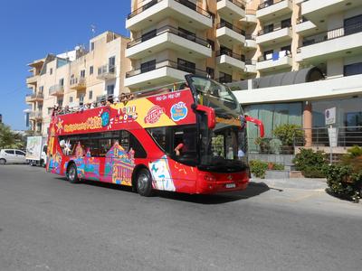 Jedną z atrakcji wyspy są zabytkowe, również dwupiętrowe autobusy z lat 50. Wycieczka takim autobusem typu HOP ON / HOP OFF to koszt 15 euro na jedną z tras (północna lub południowa Malta) lub w zestawach od 20 euro z Gozo / obie trasy / Malta nocą itd. Na trasie w dowolnym przystanku można wysiąść i zwiedzać dane miasteczko i wskoczyć kiedy chcemy w kolejny autobus aby kontynuować podróż (bilet ważny cały dzień do zakończenia trasy). W autobusach z odkrytym tarasem na dachu widać wyspę cudownie, można zrobić rewelacyjne zdjęcia, słuchawki w autobusie także z polską wersją językową!!! więc słuchamy dodatkowo przez co przejeżdżamy, co widzimy, opowieści i historie danych miejsc.
